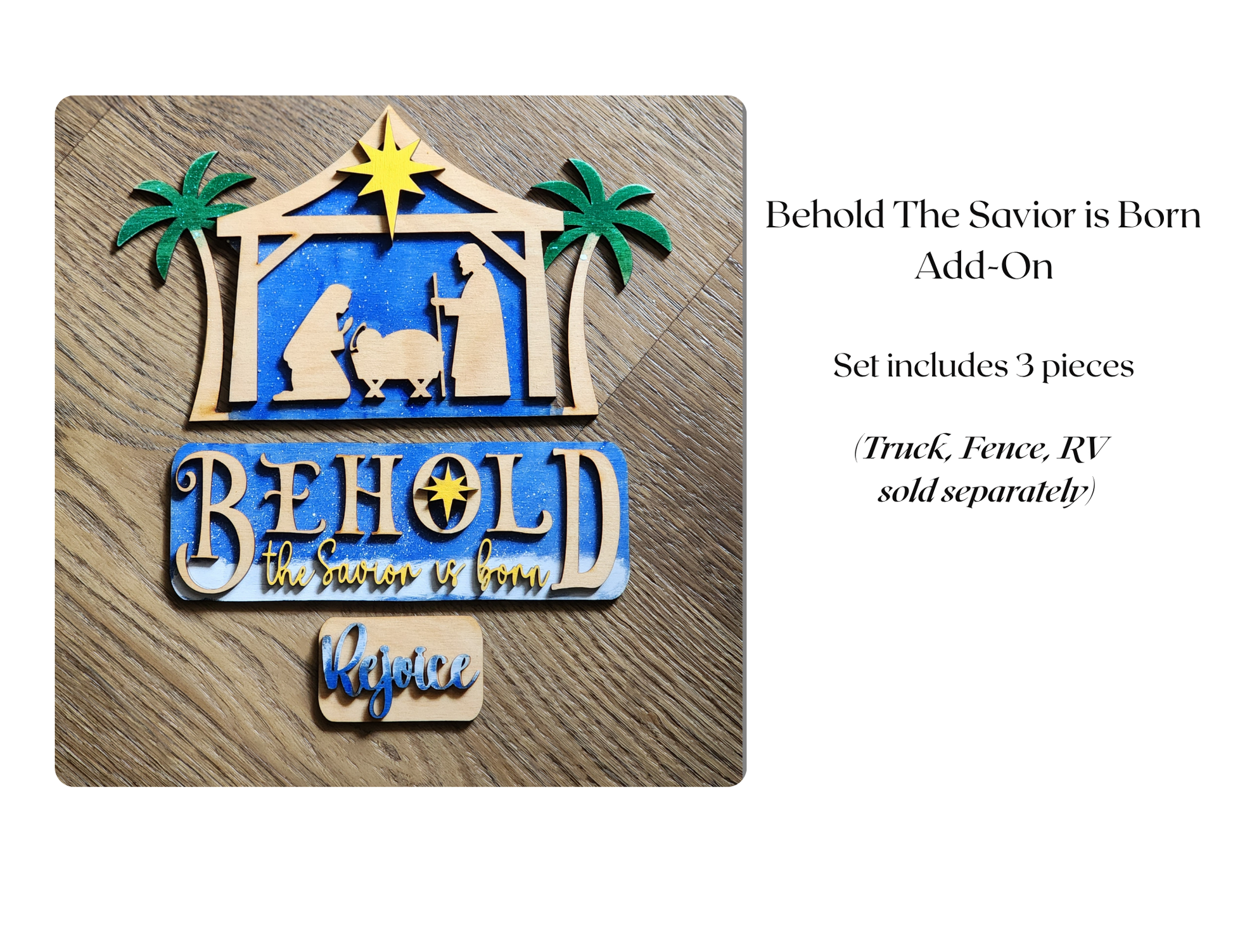 Behold – A Savior Is Born Interchangeable Christmas Add-On | Handmade Nativity Set | Christian Faith Holiday Décor | Hand-Painted Wooden Insert