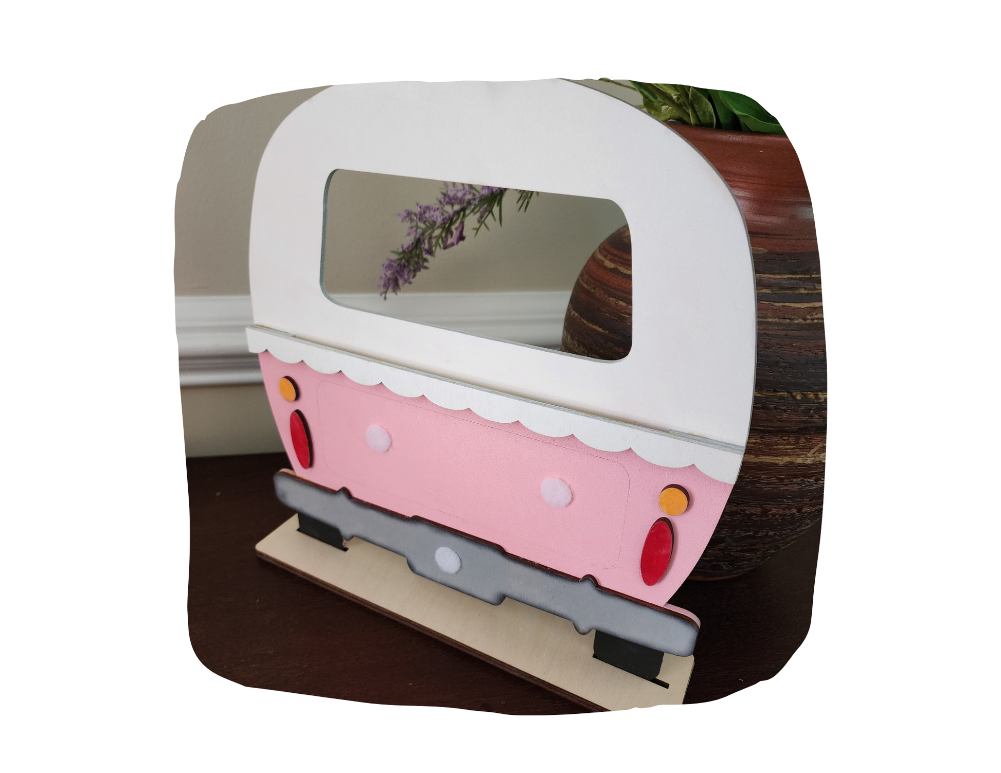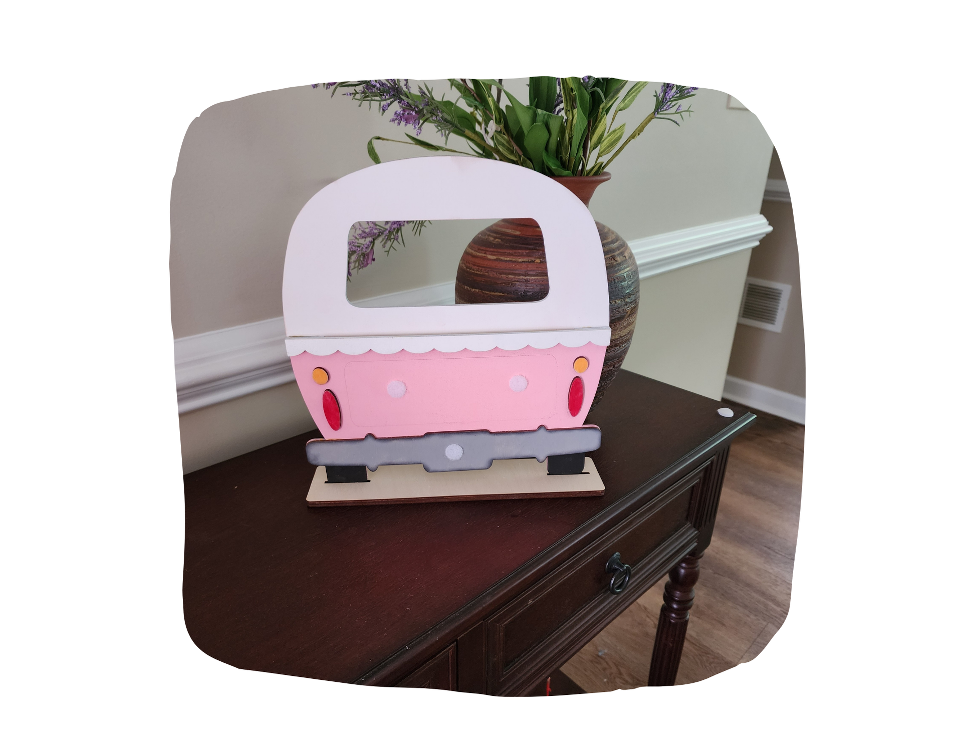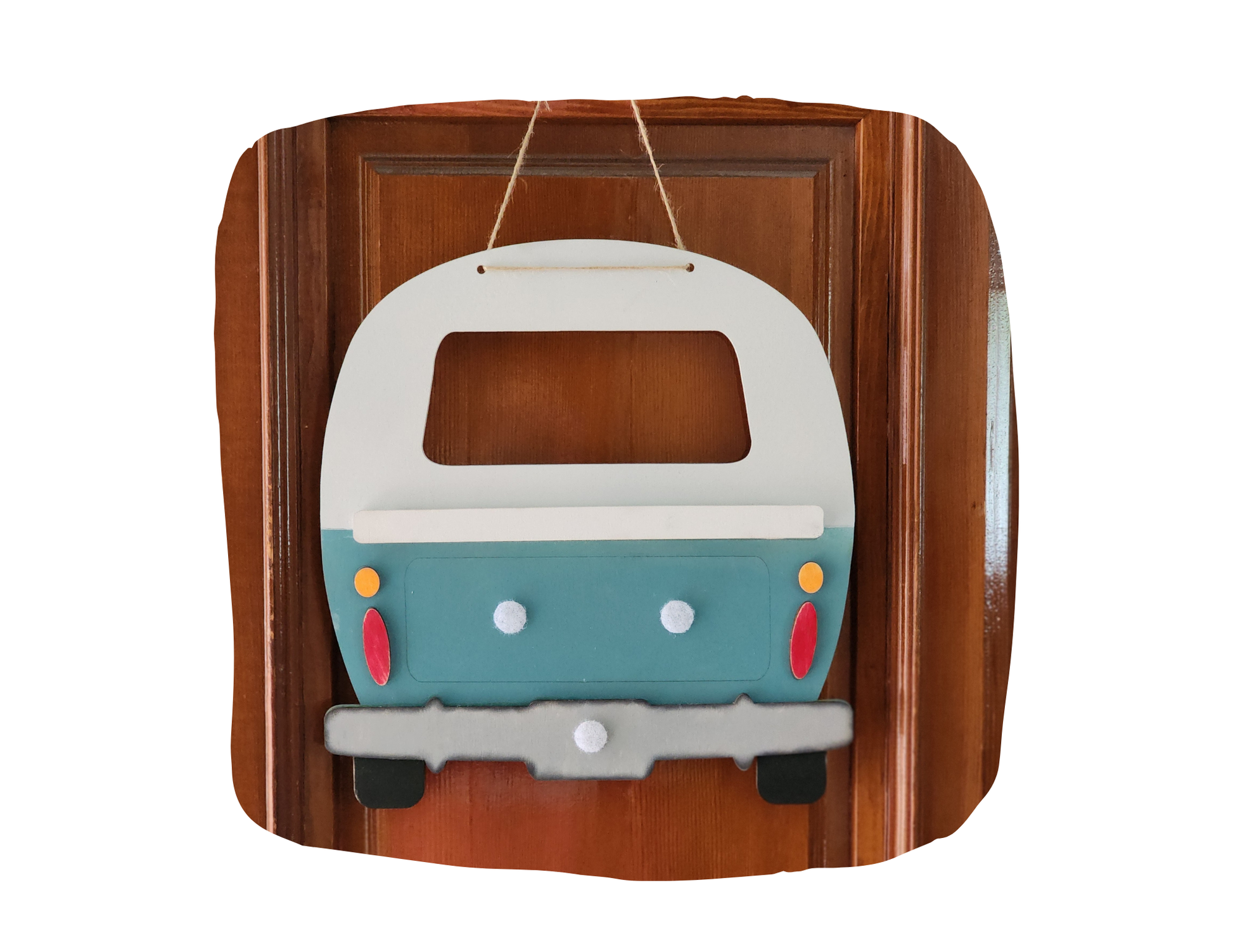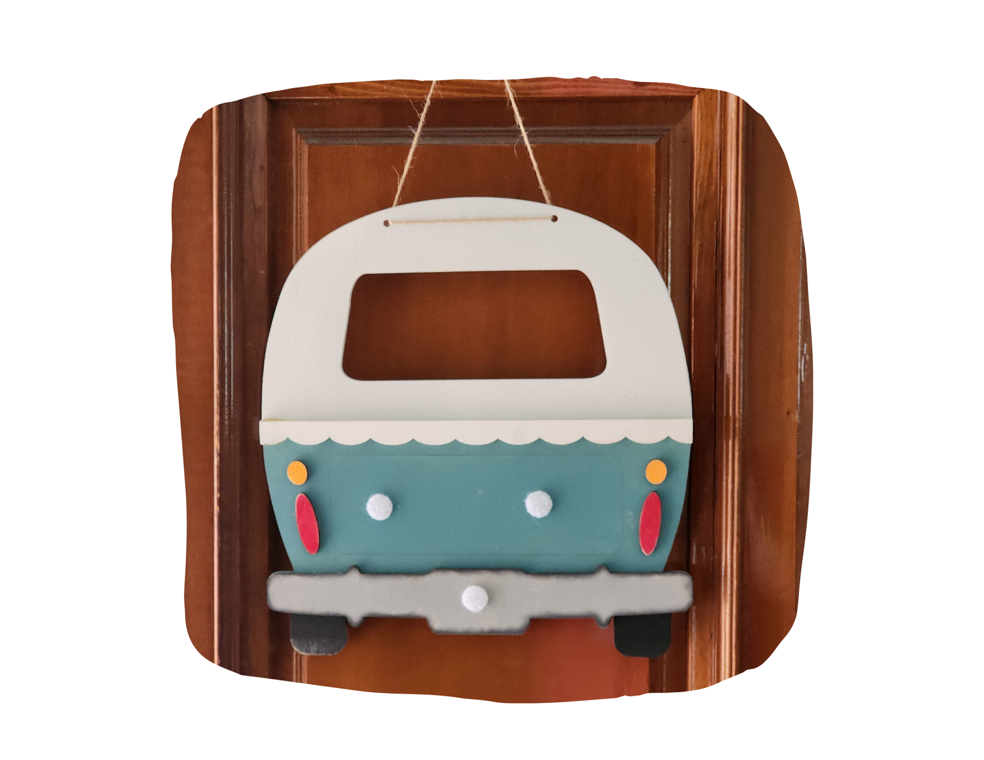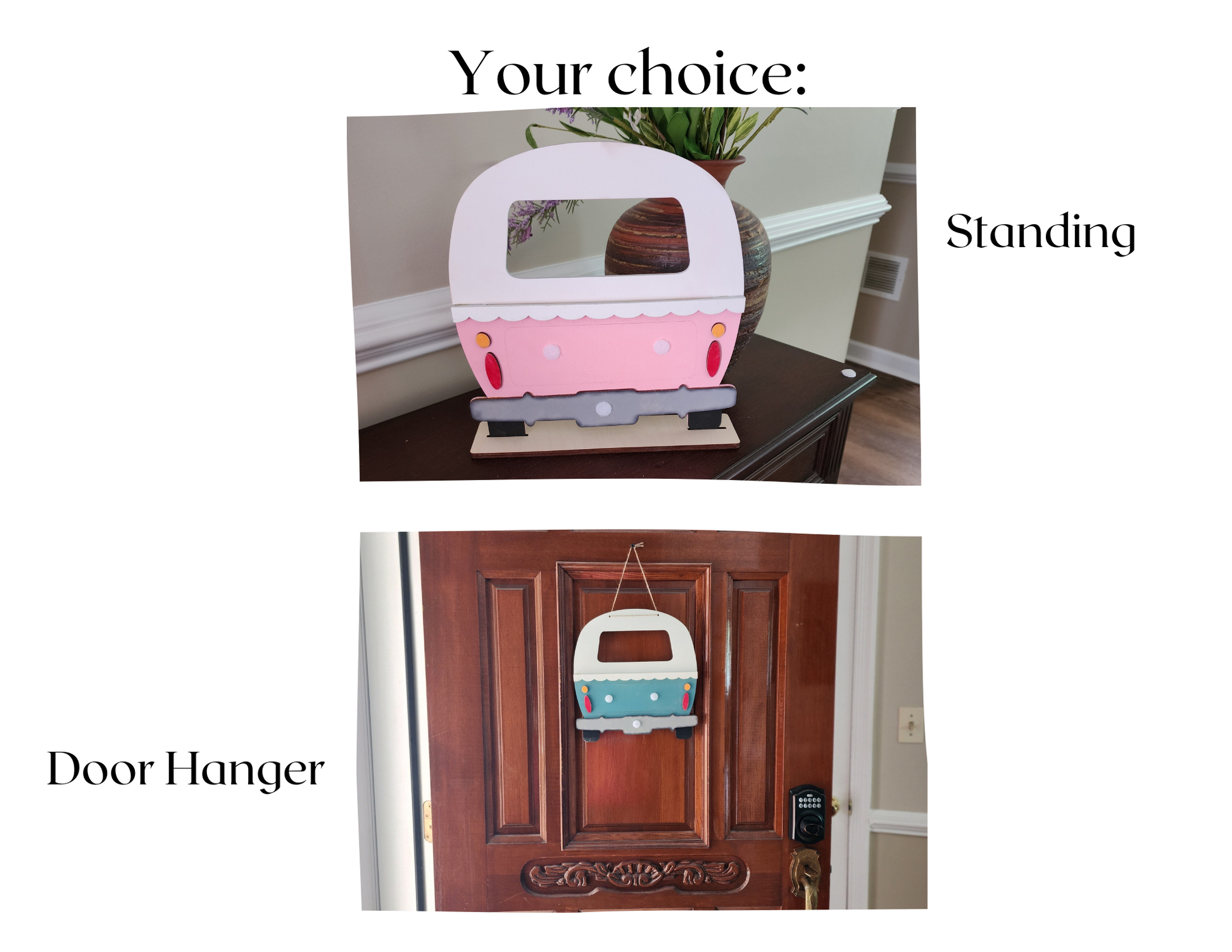 Whether you prefer it freestanding or hung on your door, this camper fits beautifully in entryways, kitchens, or small spaces. Choose between scalloped or plain edging for a look that suits you. A fun and charming piece for campers, glampers, and anyone who loves the open road!