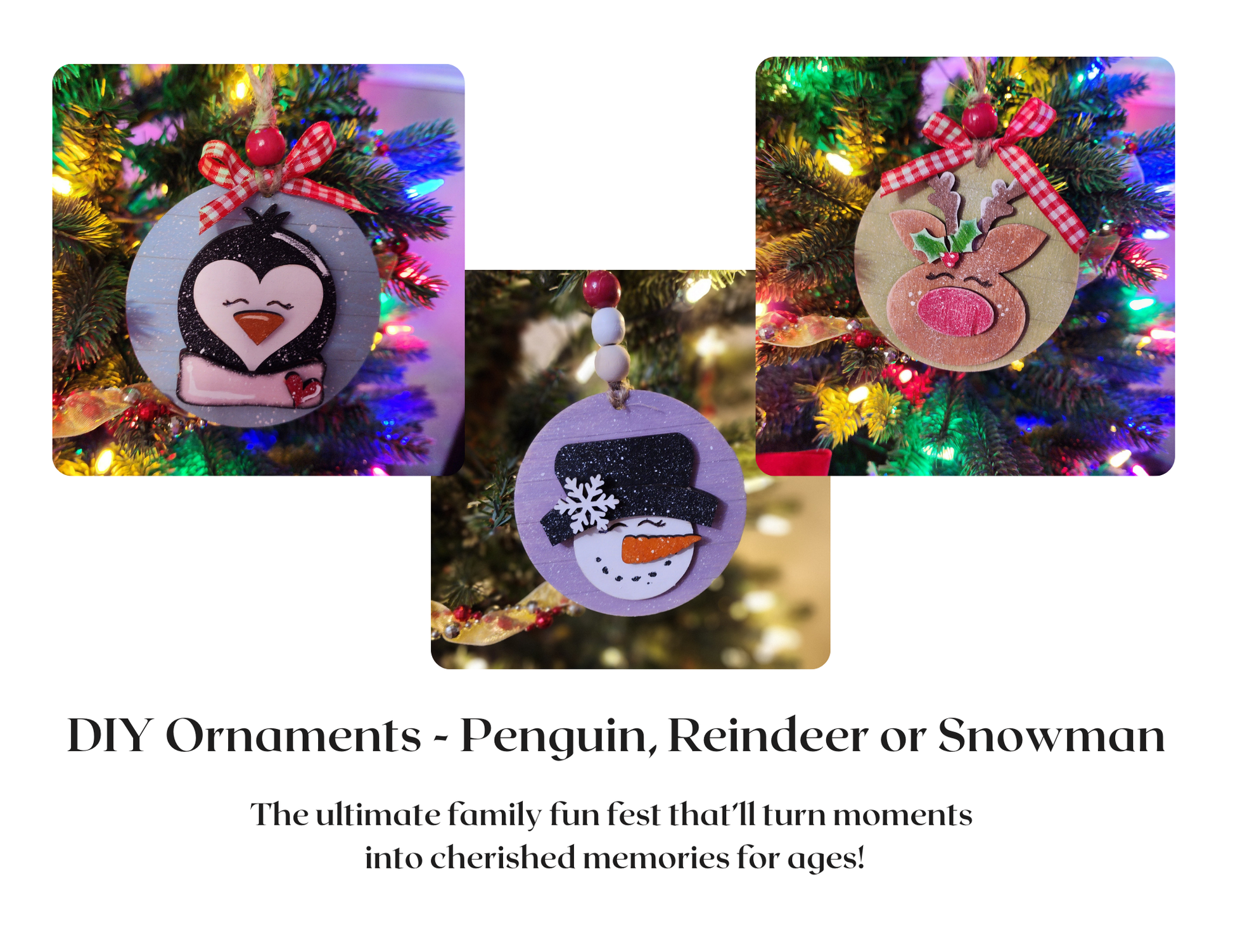 Perfect for family fun, each 3-inch ornament offers a chance to get creative together. Choose from a charming Penguin, a jolly Snowman, or a festive Reindeer design.