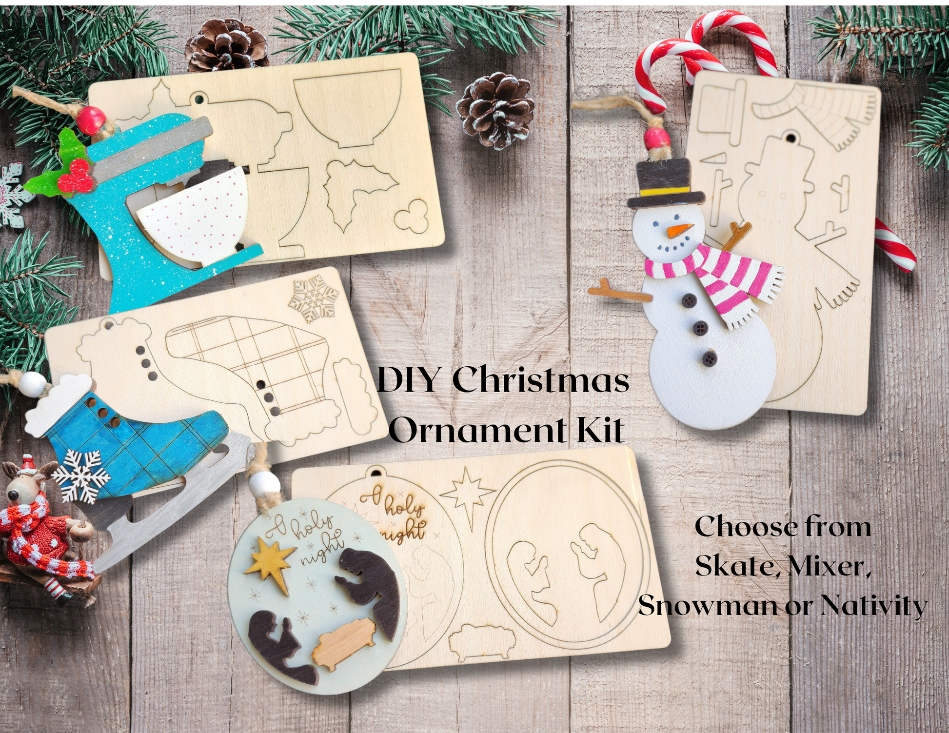 Perfect for family fun, each 3-inch ornament offers a chance to get creative together. Choose from a simple Snowman, Skate, Nativity and Mixer (Perfect for the cook!).