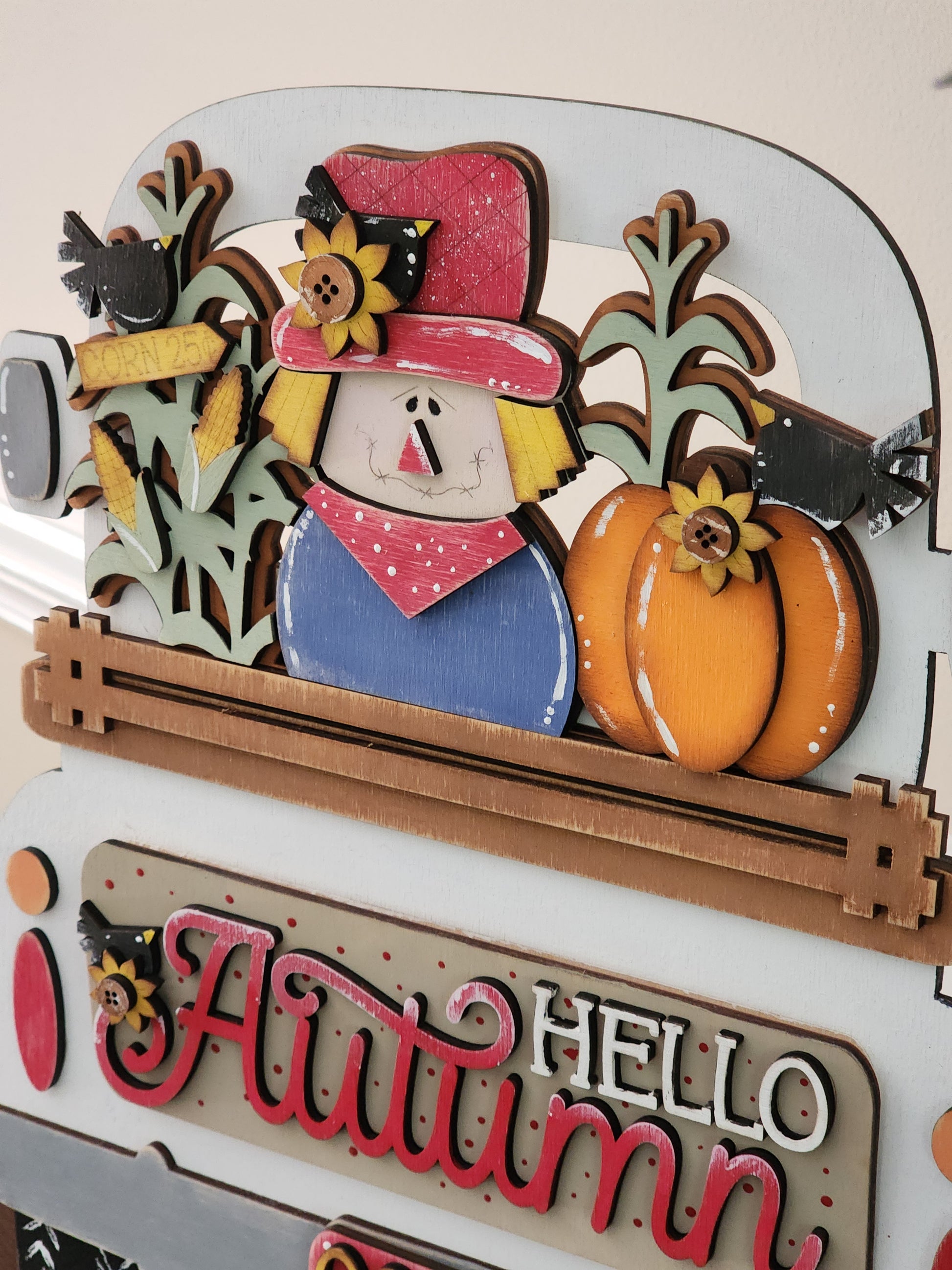 Fall Scarecrow Interchangeable Add-On – 3 Piece Harvest Truck Decor with Crows & Corn Stalks – Hand-Painted Autumn Display