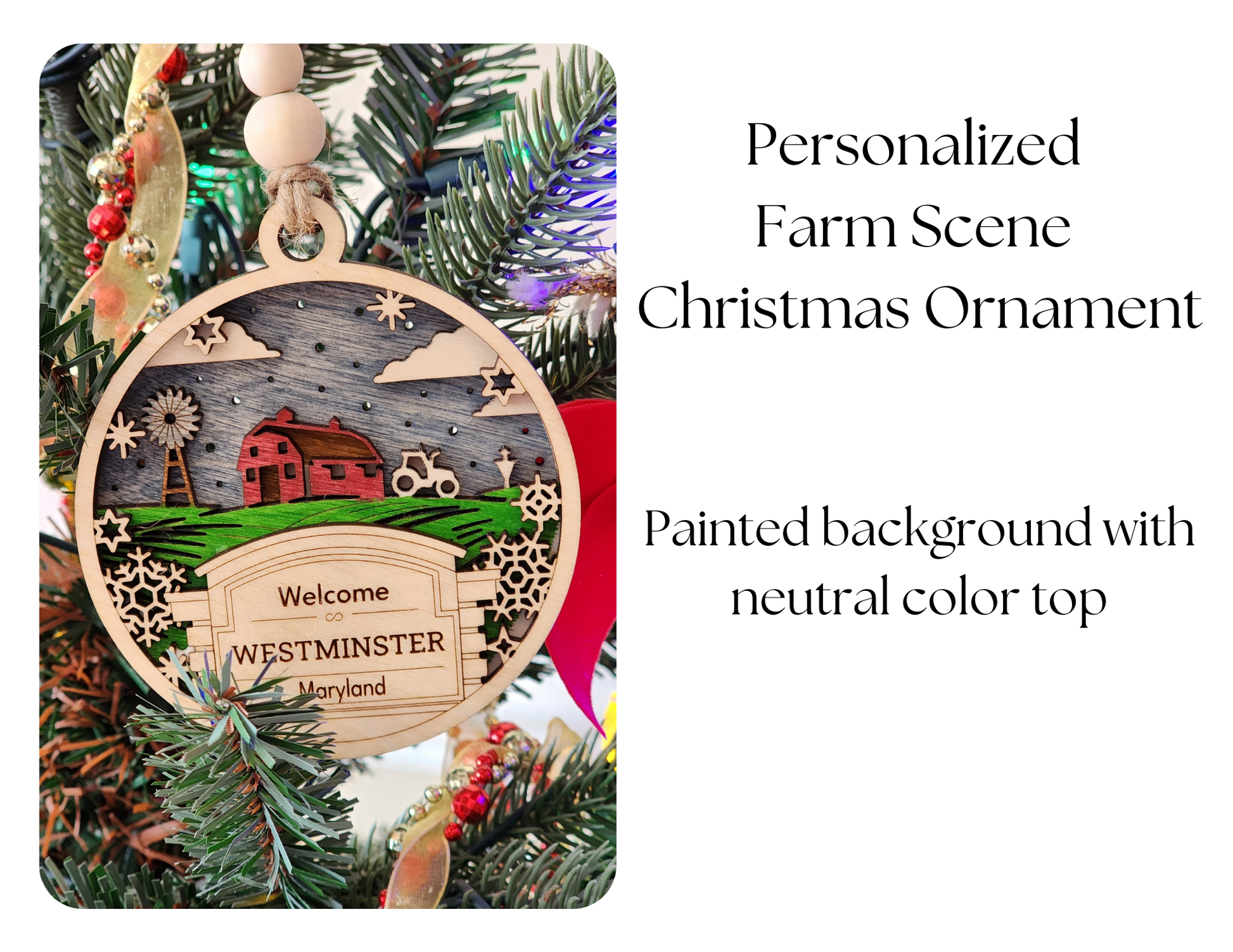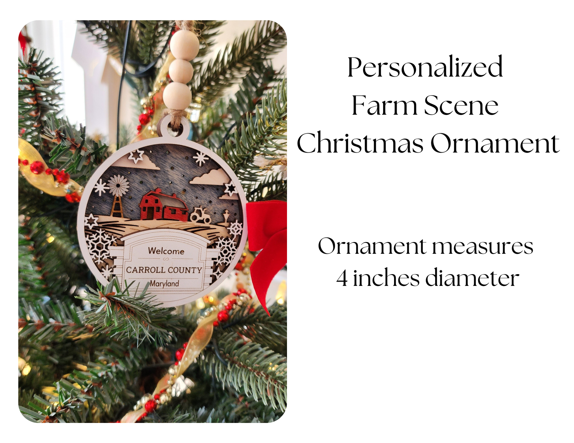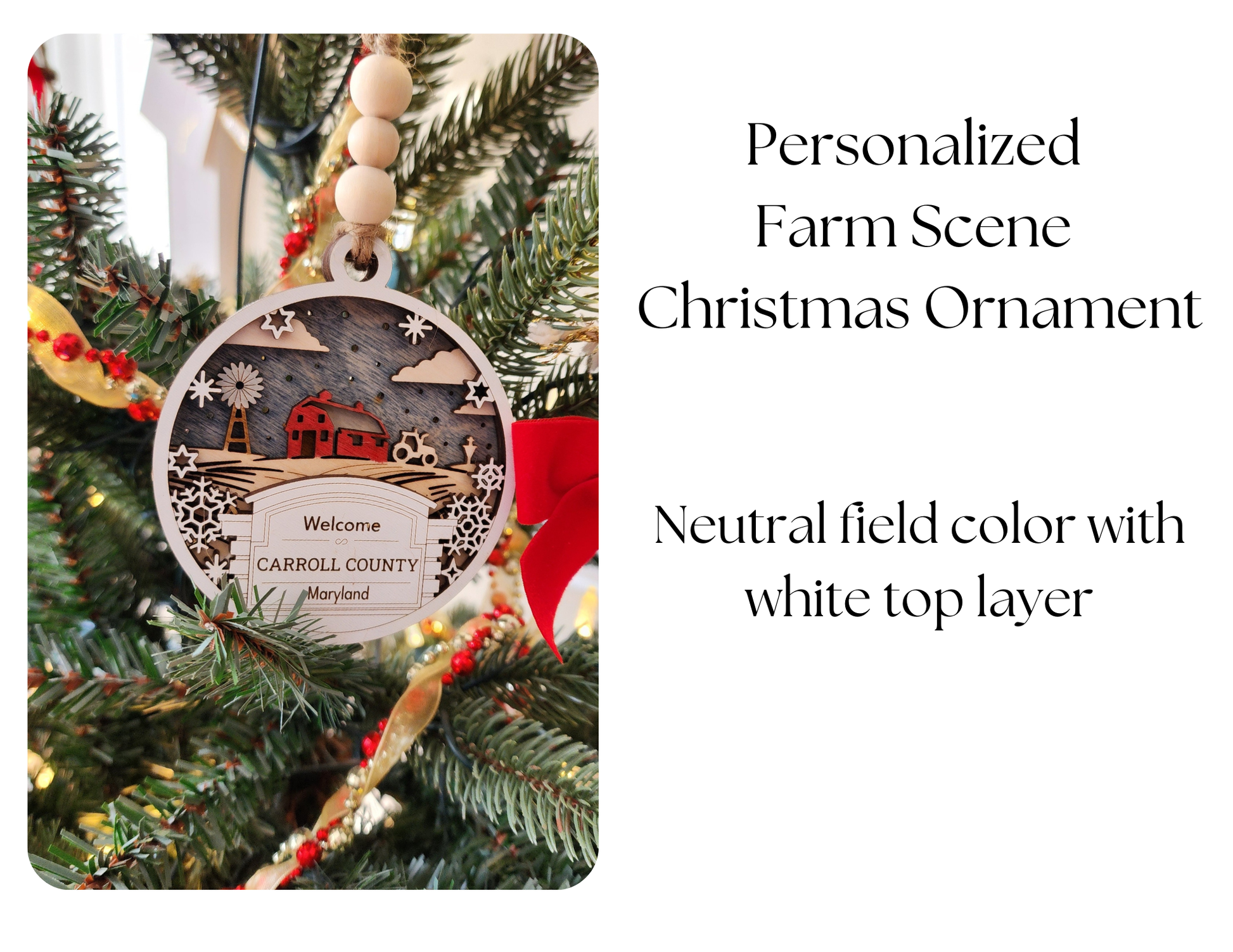 Add a dash of country charm to your tree with our delightful personalized farm scene Christmas ornament!
