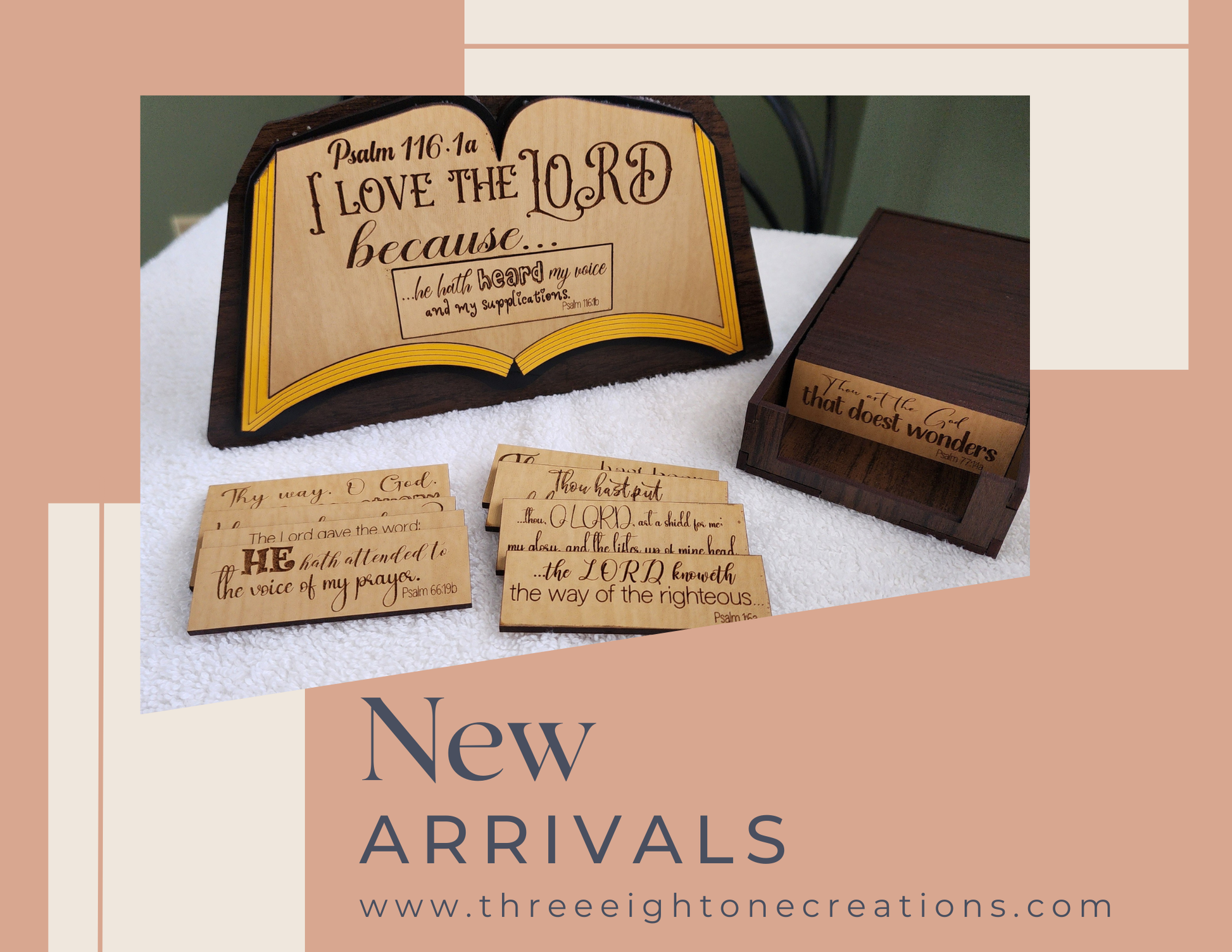 52 Scripture Verses – One for every week of the year! Each verse from the Book of Psalms is laser-engraved in the timeless beauty of the Authorized King James Version (KJV)
