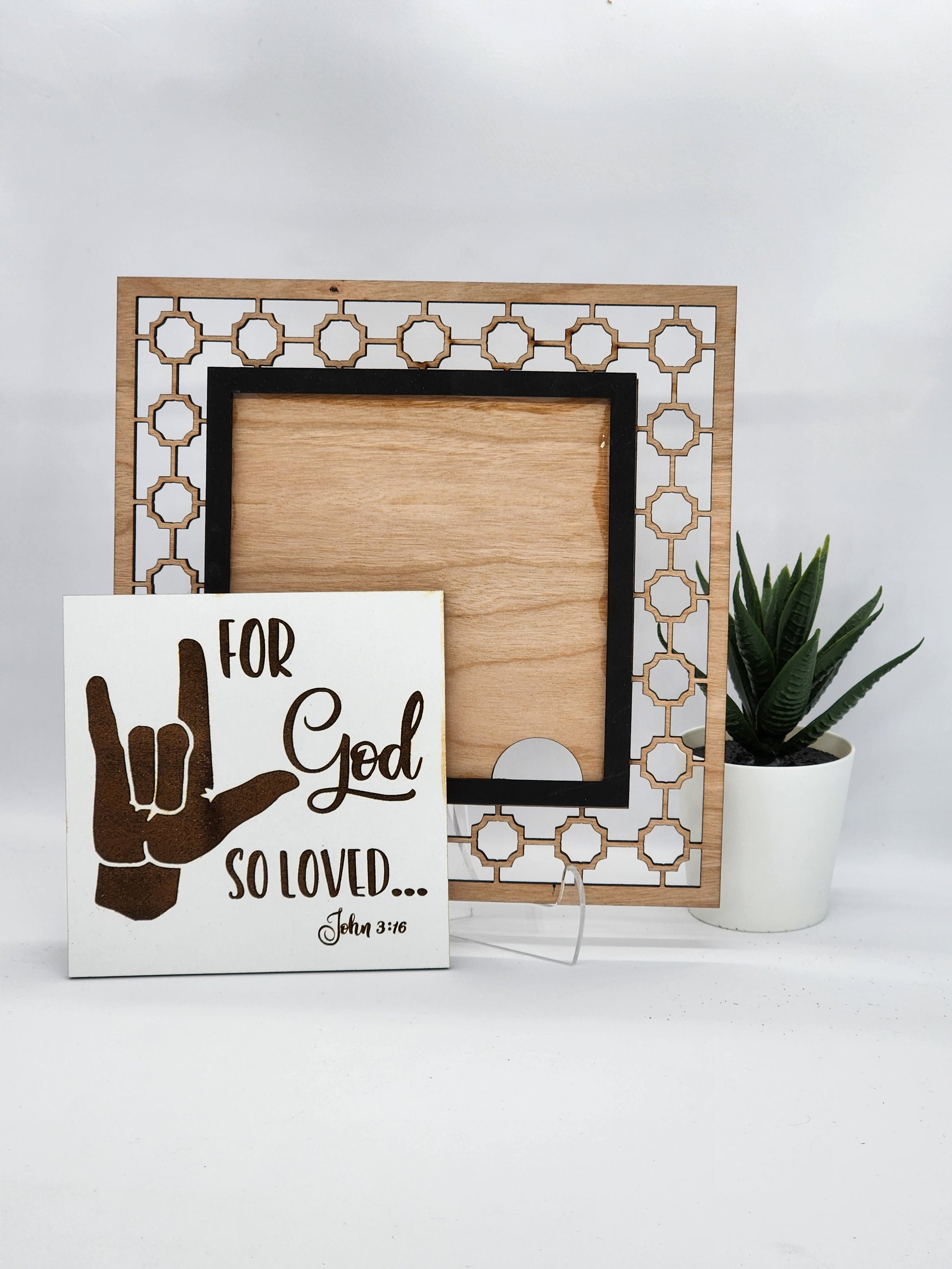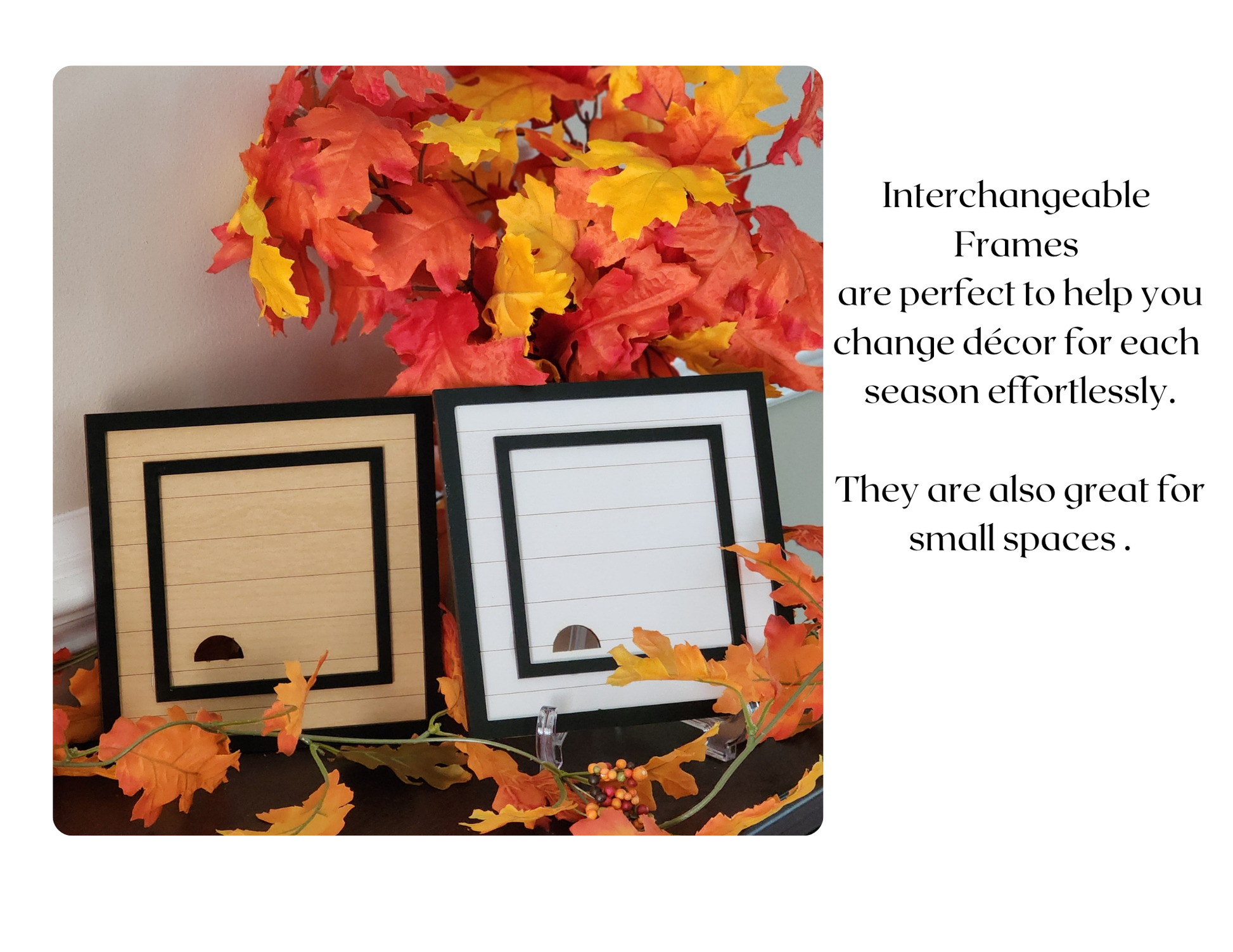 Introducing the perfect touch of love and warmth for every season - our 7x7 inch Interchangeable Frames! Designed with you in mind, these charming frames make it so easy to refresh your home décor with the changing seasons. Each frame holds seasonal or holiday 4.25x4.25 inserts that are simple to swap out, ensuring your home reflects the beauty of God's creation all year round.