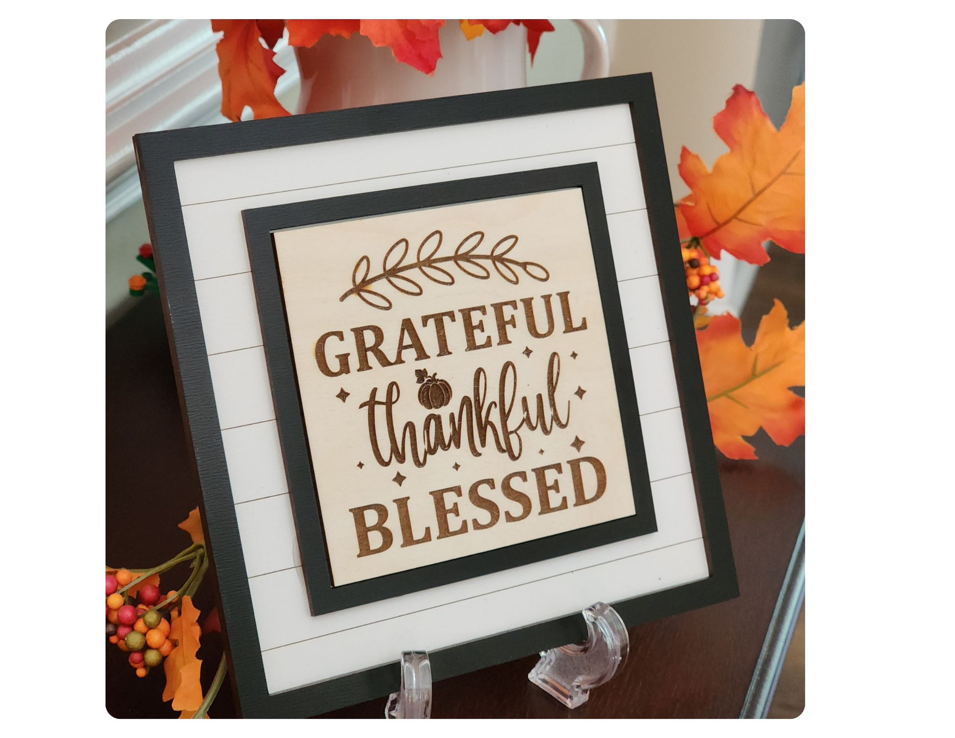 Welcome the beauty of Fall into your home with our Fall interchangeable inserts for your 7x7-inch frames (Sold separately)! This interchangeable "Thankful Grateful Blessed" insert is perfect for reminding you of life's simple joys. It's a charming way to reflect your heart of gratitude and faith throughout the year.