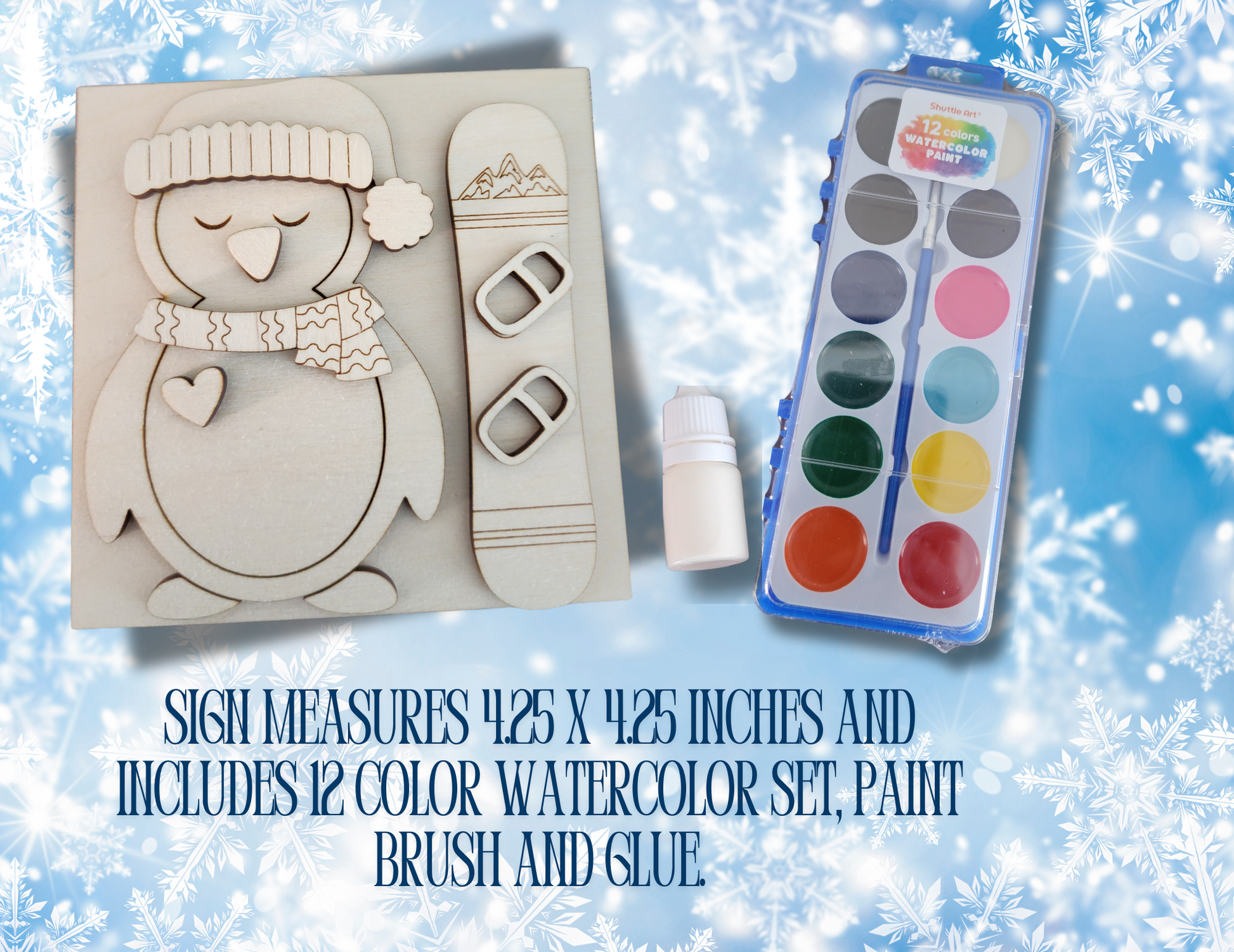 Discover endless crafting possibilities with our Skiing Penguin DIY Paint Kit, perfect for all ages and skill levels. The included Baltic Birch blank design is a perfect canvas for your imagination, whether you’re painting, gluing, or adding unique embellishments. The completed design measures approximately 4.25 x 4.25 inches.
