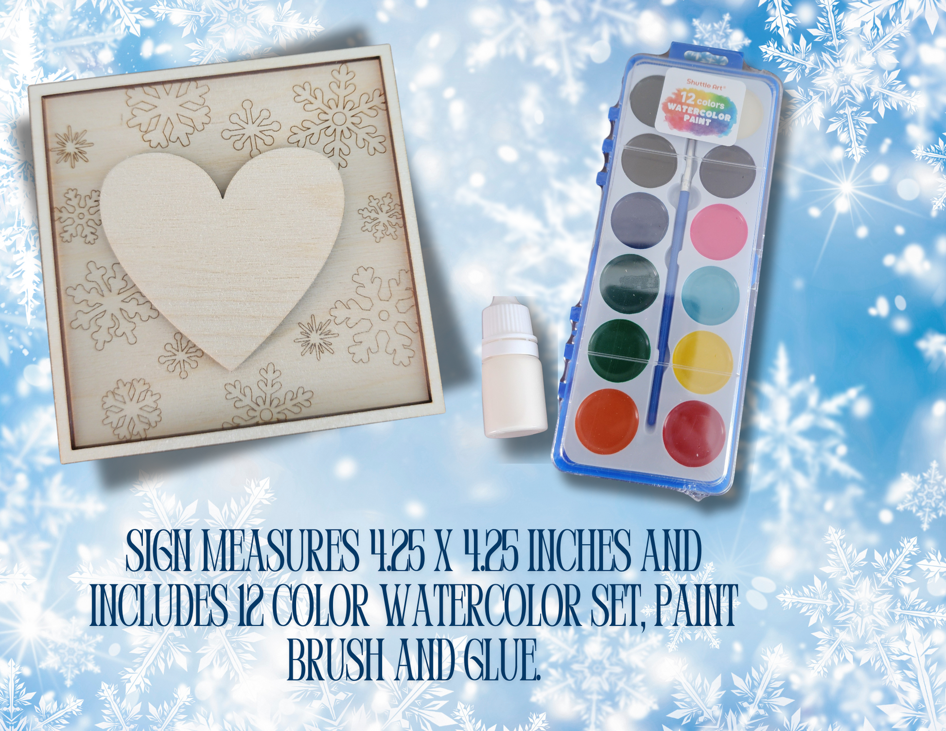 Discover endless crafting possibilities with our Snowflake Heart DIY Paint Kit, perfect for all ages and skill levels. The included Baltic Birch blank design is a perfect canvas for your imagination, whether you’re painting or adding unique embellishments. The completed design measures approximately 4.25 x 4.25 inches.