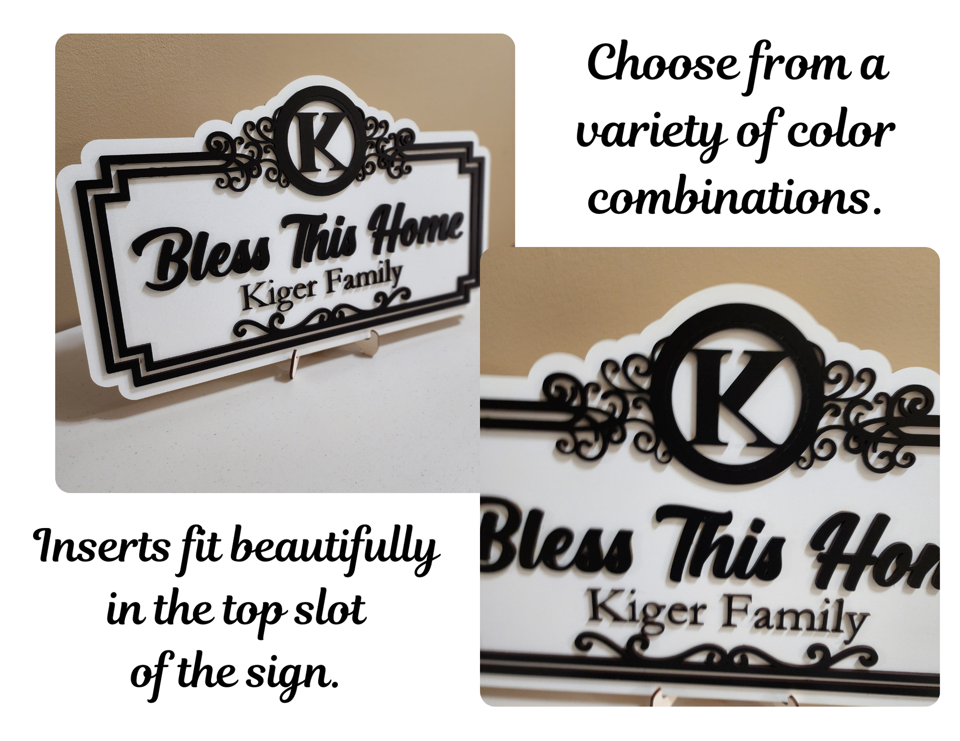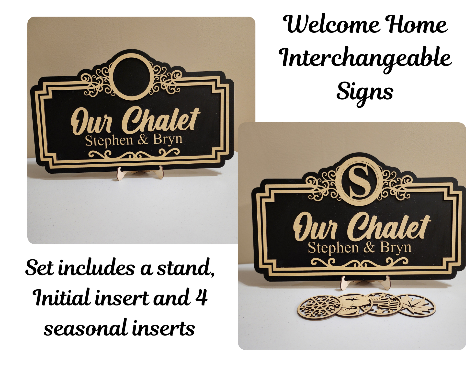 The circular insert area at the top makes it a breeze to update your décor for seasons, holidays, or special occasions. Starter set includes 1 insert with the initial of the last name and 4 additional seasonal inserts. With its timeless design and easy interchangeability, this sign is a must-have for creating a cozy, personalized home atmosphere.
